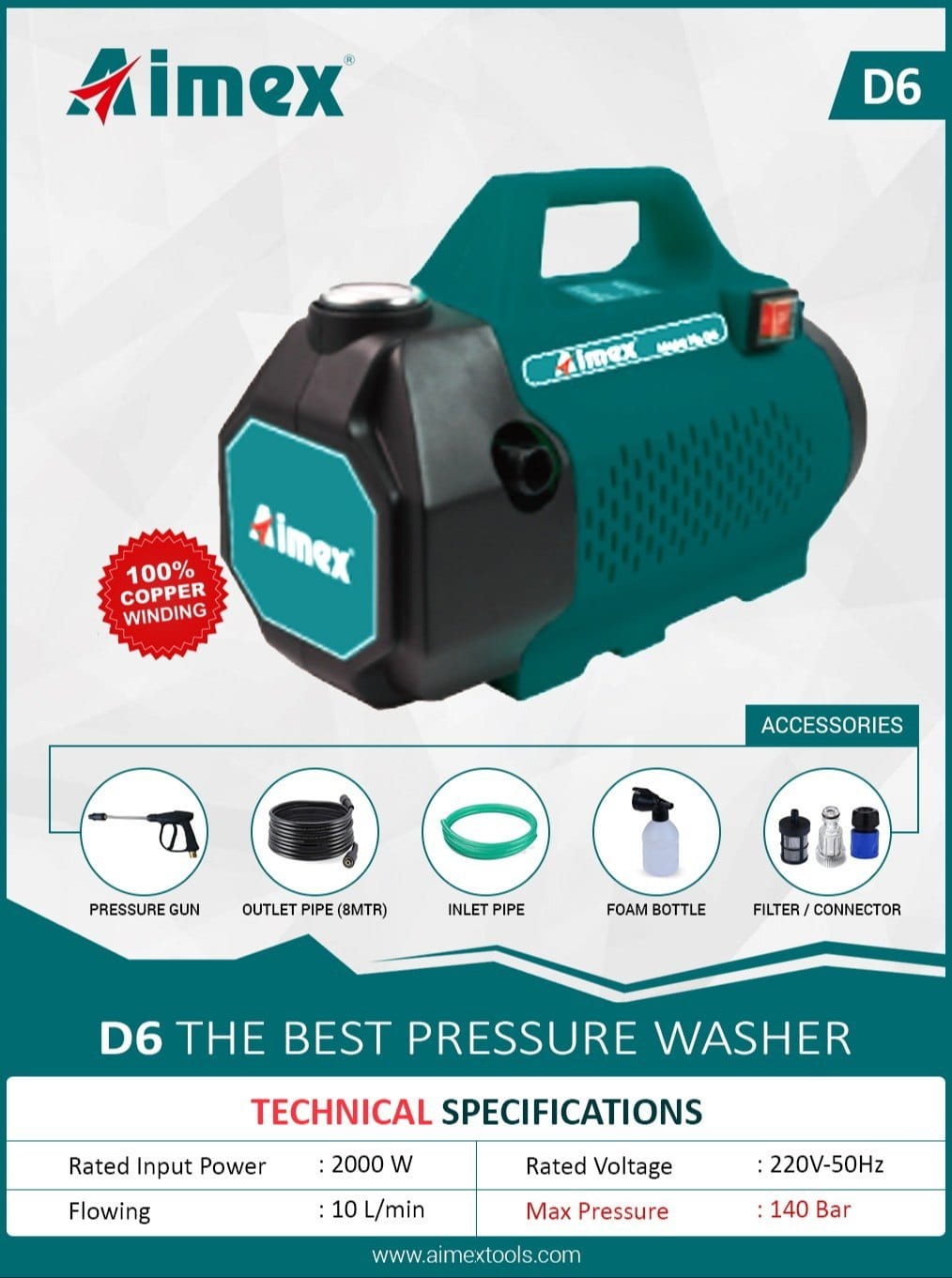 • Power:1900W, Pressure:125 Bar, Flowing:10L/min, Voltage:220V~50Hz, 3 Meter Power Cable, Venturi System, Auto Stop, Self-Intake Function, Pressure Gauge, Variably Adjustable Fan Spray Lance, Water Filter, Low-Noise Operation: Auto Stop Technology Switches The Motor And Pump Off Automatically When The Switch is Released, Includes: 1900W Pressure Washer, Inlet Pipe, 8M Outlet Pipe, Water Filter, Soap Dispenser, Inlet Filter, Quick Connector, Pressure Gun, This Pressure Cleaner Can Be Used For Washing Cars & Bikes, Pouring Water Into Plants and Trees, Floor Cleaning, Home Cleaning, and Many Other Cleaning Applications. It has a Compact and Portable Design That Makes It Easy To Carry